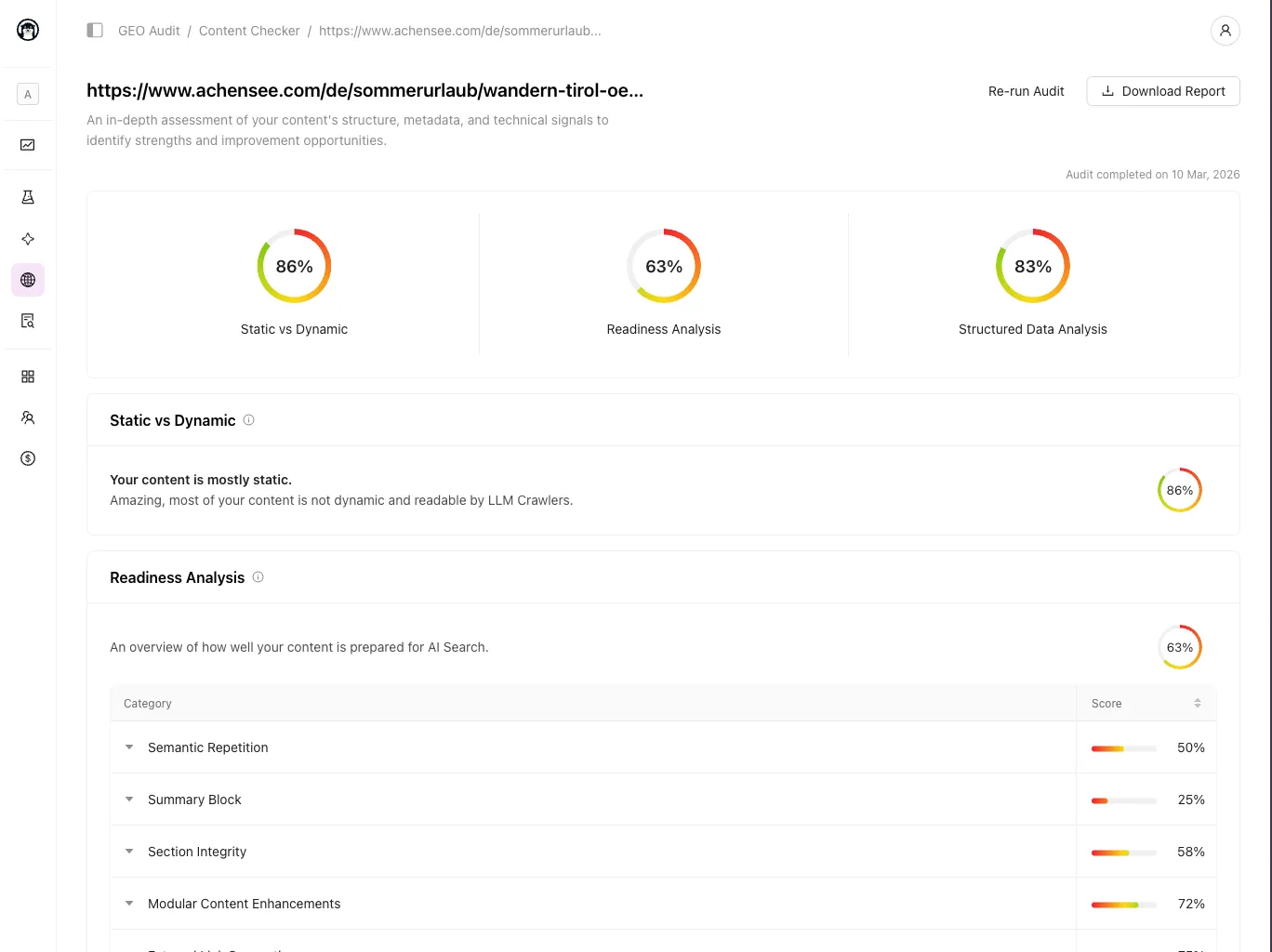 Um die Qualität der digitalen Kommunikation des TVB Achensees kontinuierlich zu verbessern, führt das Content-Management-Team regelmäßig Website-Audits mit Otterly.ai durch. Dieses Tool bietet dabei wertvolle Unterstützung.
