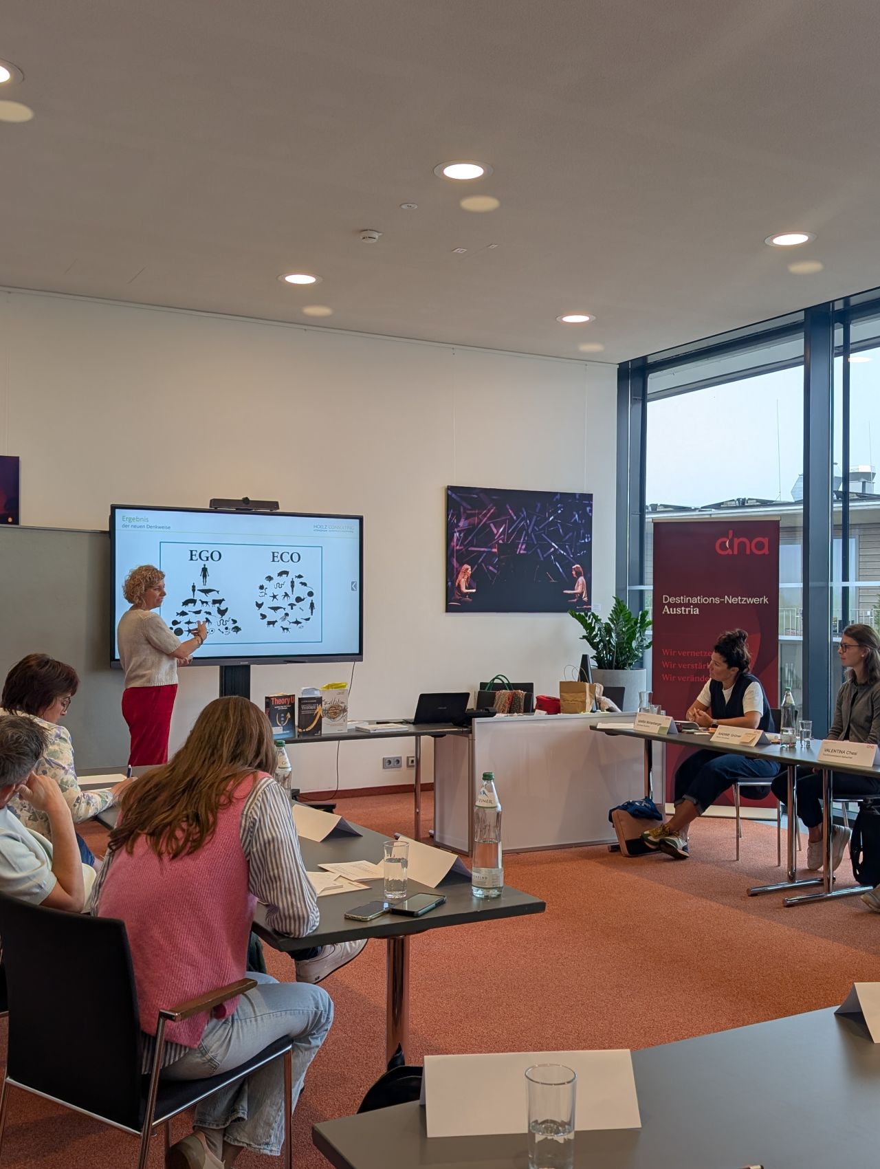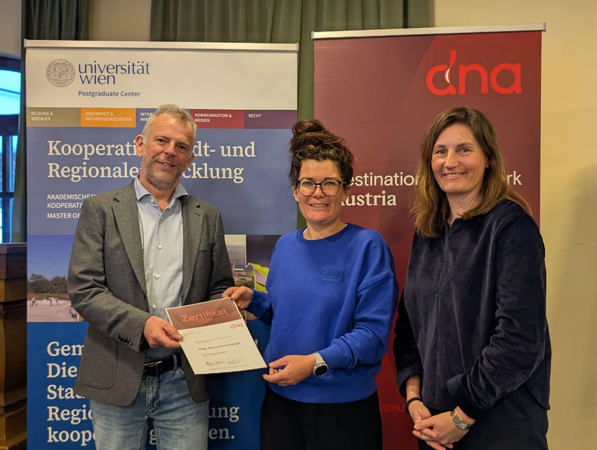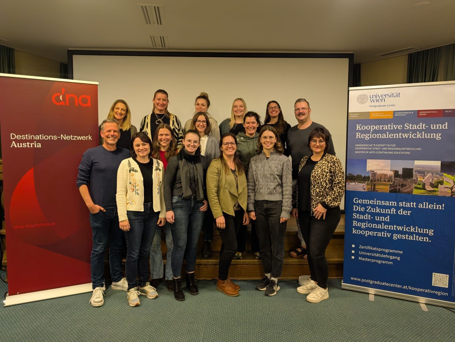 Die dna Nachhaltigkeits-Akademie wurde erstmals gemeinsam mit dem Universität Wien Postgraduate Center und dem Destinations-Netzwerk Austria (dna) umgesetzt. Ziel war ein strukturierter Rahmen für Wissenstransfer, Austausch und die Entwicklung konkreter Ansätze für nachhaltigen Tourismus. Insgesamt nahmen 15 Personen aus Destinationen in ganz Österreich teil, darunter auch der Tourismusverband Achensee, vertreten durch Maria Wirtenberger.