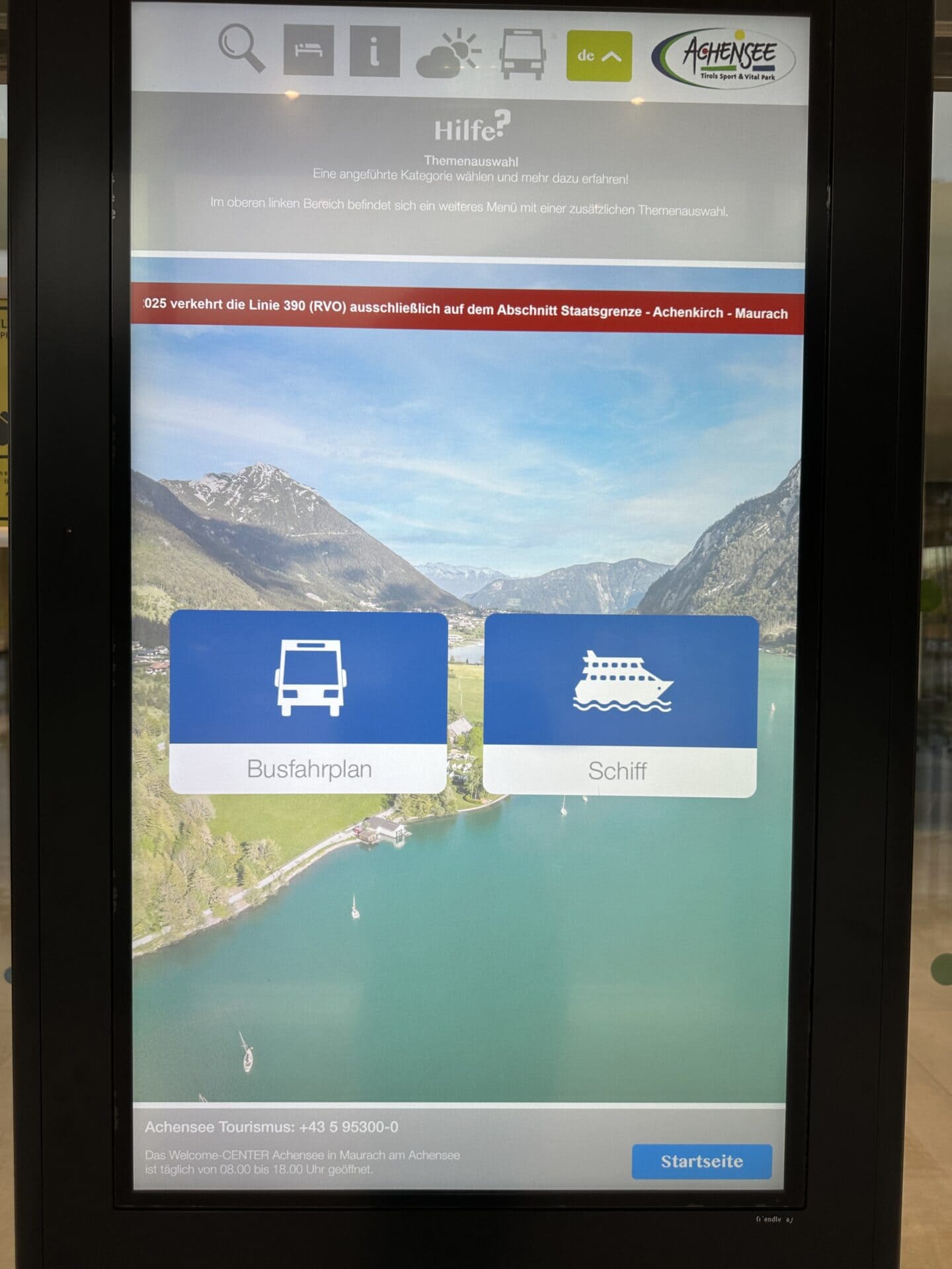 Im Jahr 2024 wurden in Summe rund 55.000 Zugriffe auf die sieben Terminals verzeichnet. Besonders häufig genutzt wurden die Stationen im Informationsbüro Pertisau, am Atoll Achensee und am Infopoint Pertisau. Diese drei Standorte dienen exemplarisch für die hohe Relevanz der Terminals im täglichen Gästeaufenthalt.