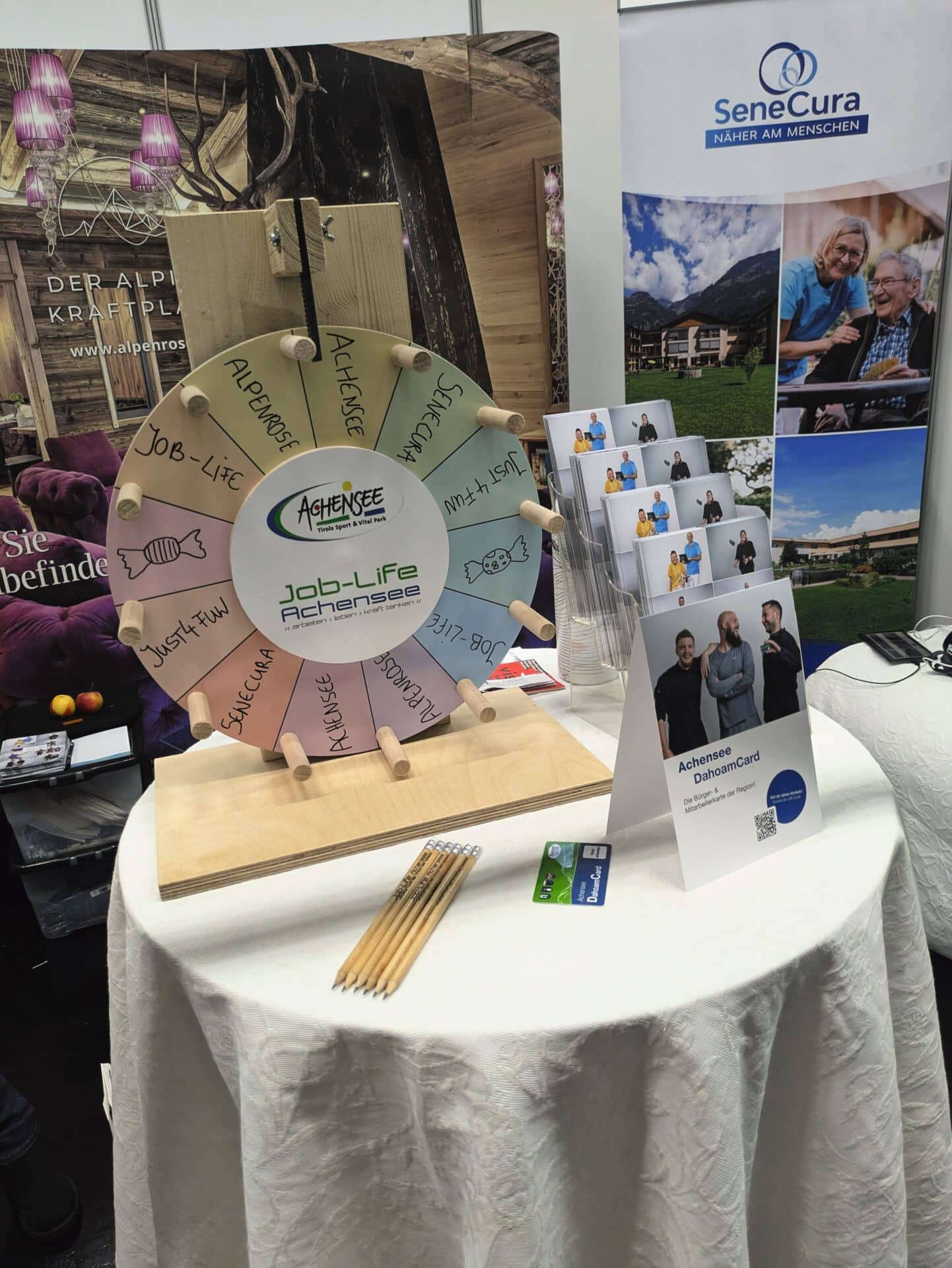 Am gemeinsamen Messestand informierte Job-Life Achensee über Ausbildungs- und Berufsmöglichkeiten in der Region und stellte potenzielle Karrierewege am Achensee vor. Ein interaktives Wissensformat rund um die Region und die beiden Betriebe bot zusätzlich einen niederschwelligen Zugang und erleichterte den Einstieg in persönliche Gespräche. So konnten zahlreiche Kontakte geknüpft und wertvolle Einblicke in Ausbildungs- und Perspektivenmöglichkeiten am Achensee vermittelt werden.