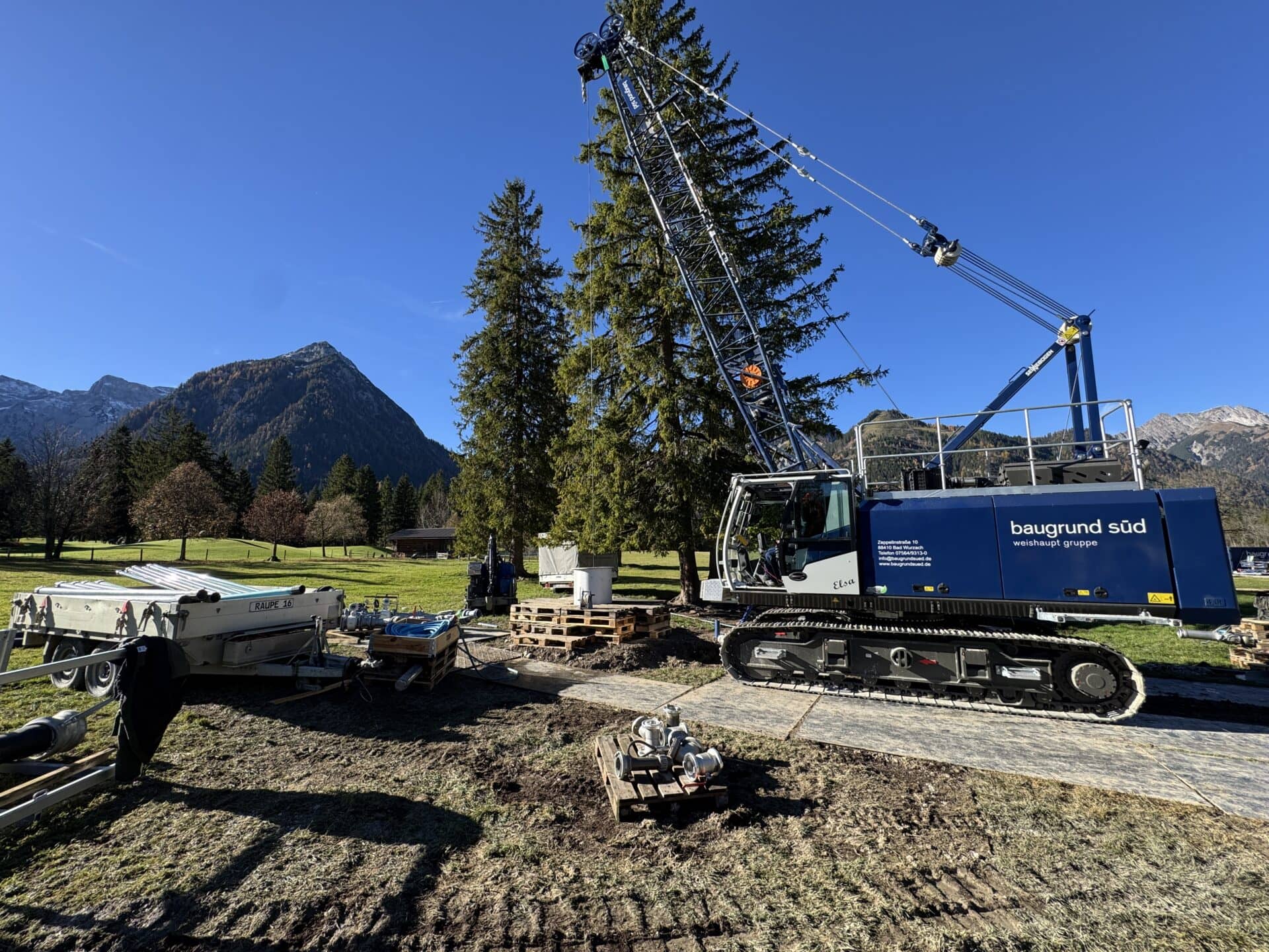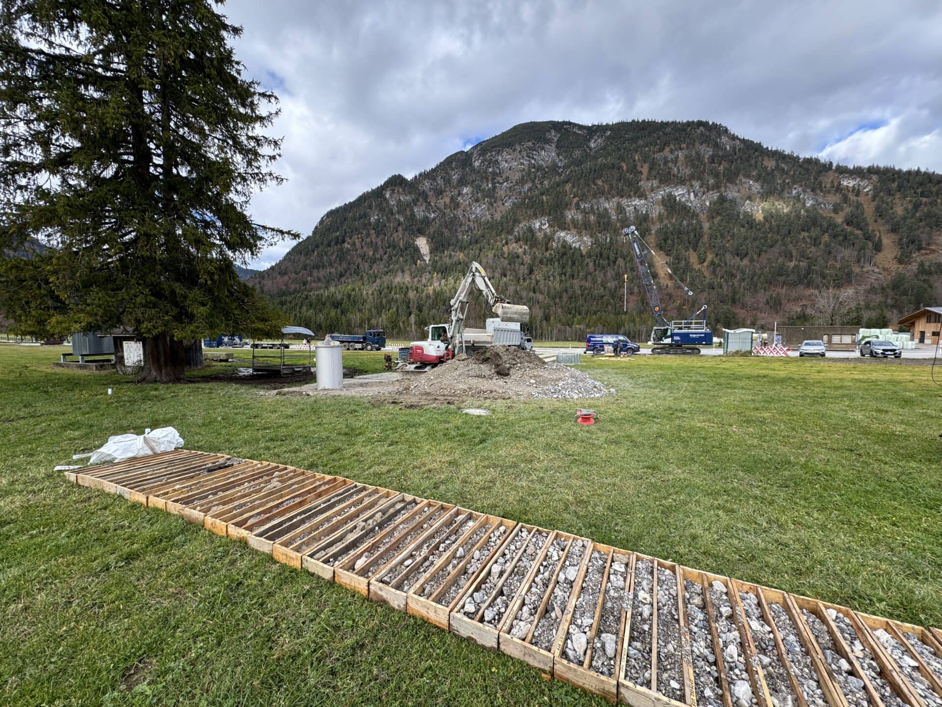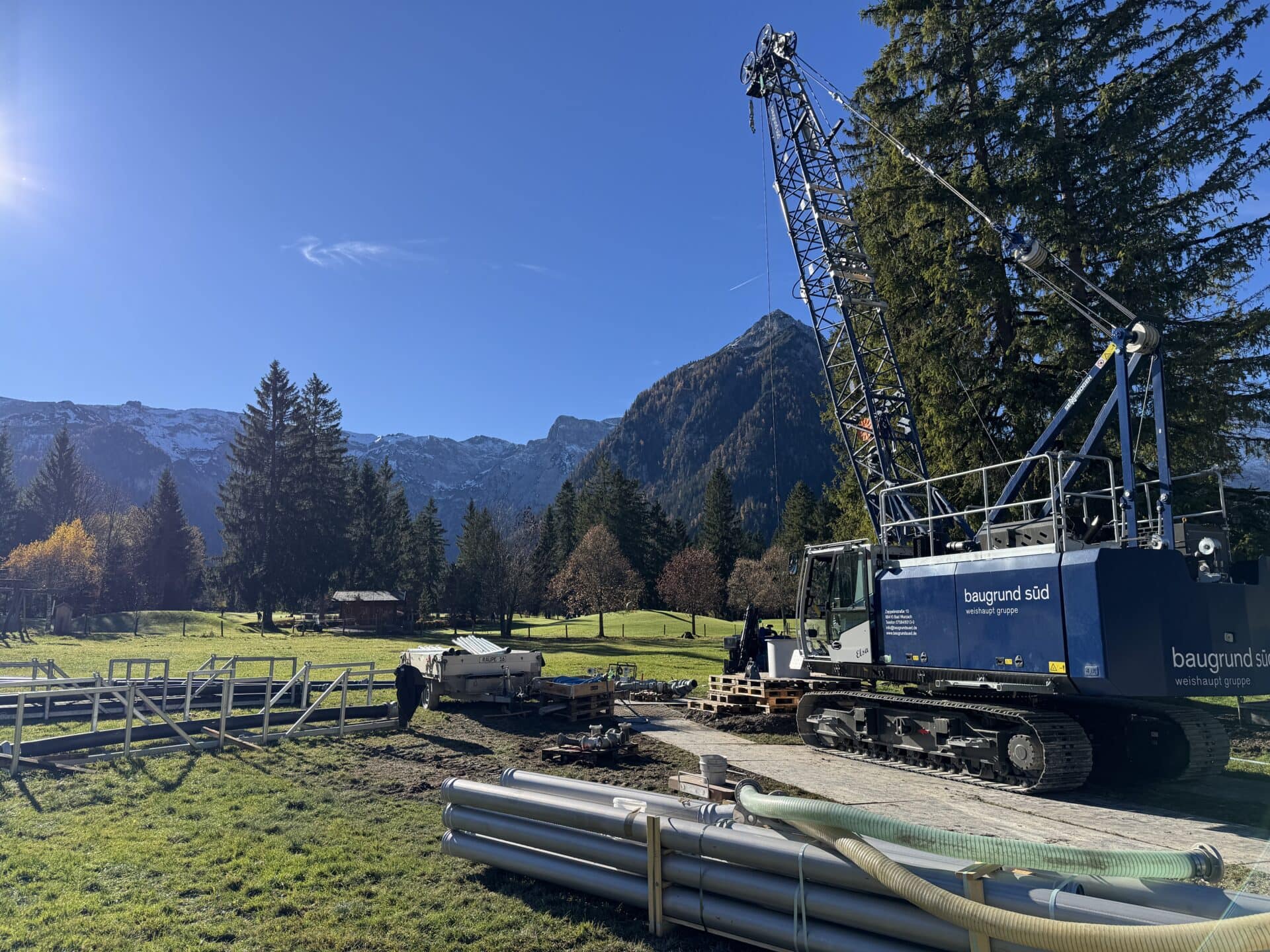 Auf Höhe des Parkplatzes Karwendeltäler entsteht aktuell ein neuer Tiefenbrunnen, der kurz vor der Fertigstellung steht. Die Maßnahme folgt auf eine erfolgreiche Probebohrung und bildet die Grundlage für die künftige Wasserversorgung der bestehenden Beschneiungsanlage in Pertisau.