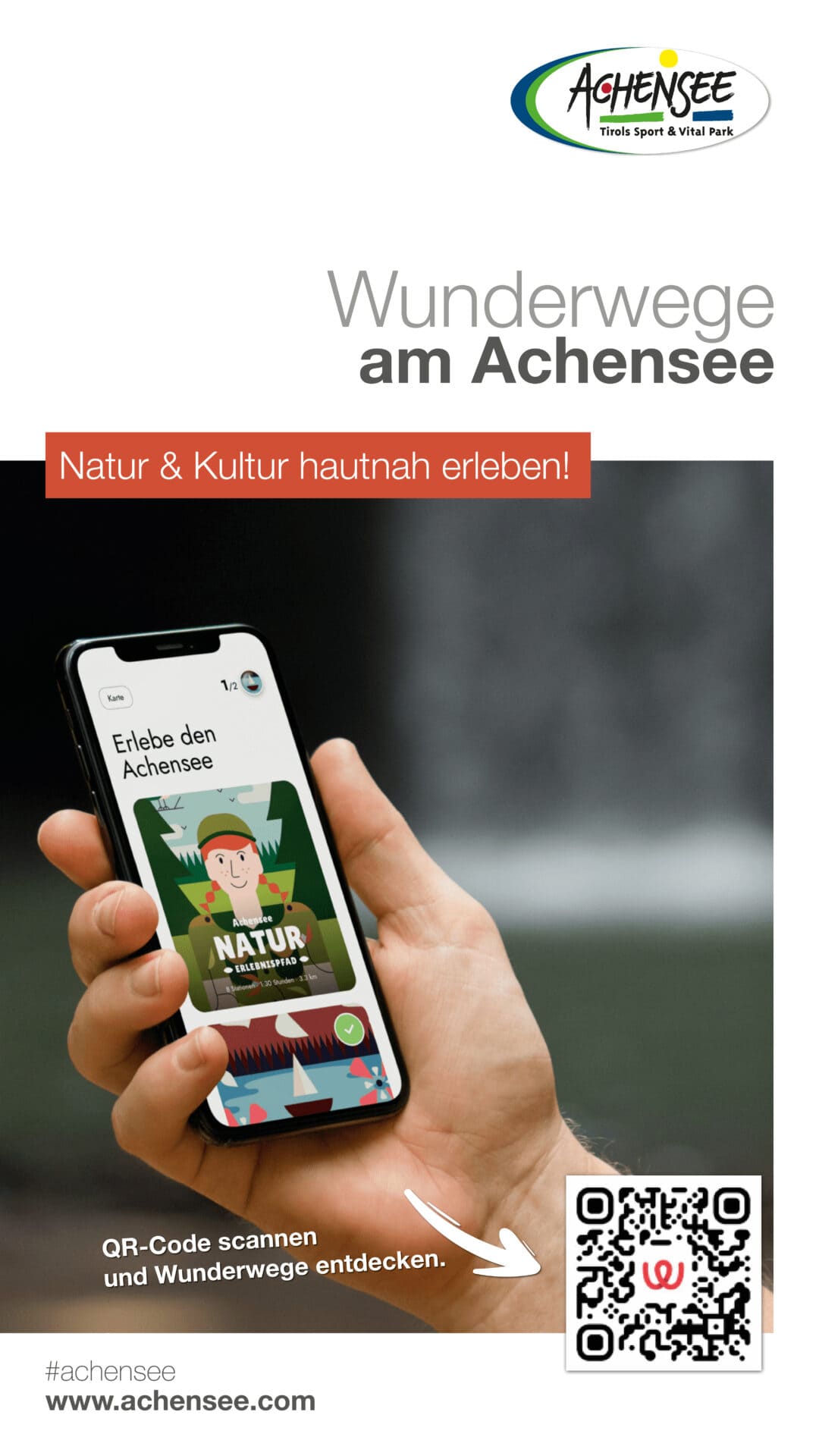 QR-Codes sind aus der Kommunikation rund um die Region Achensee nicht mehr wegzudenken. Sie kommen auf Plakaten, Panoramakarten und in digitalen Medien zum Einsatz. Ihr großer Vorteil: >> Sie sind platzsparend, flexibel aktualisierbar und ermöglichen einen schnellen Zugang zu weiterführenden Inhalten.