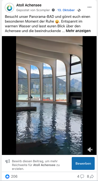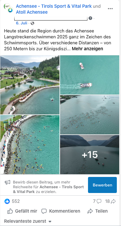 Das stetige Wachstum und die hohe Reichweite zeigen, wie erfolgreich die Kombination aus strategischer Planung, starker Bildsprache und abgestimmtem Community Management ist. Die Online-Präsenz des Atoll Achensee bleibt damit ein wichtiger Baustein im Kommunikationsmix – authentisch, emotional und reichweitenstark.