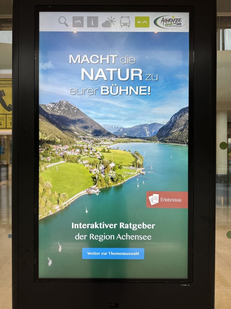 Digitale Orientierung rund um den Achensee Sieben moderne Infoterminals – verteilt auf zentrale Standorte in der Region – bieten Gästen eine benutzerfreundliche Orientierungshilfe. Ob indoor oder outdoor: Jeder Terminal spielt standortbezogene Inhalte aus und erleichtert so die direkte Verortung. Die…