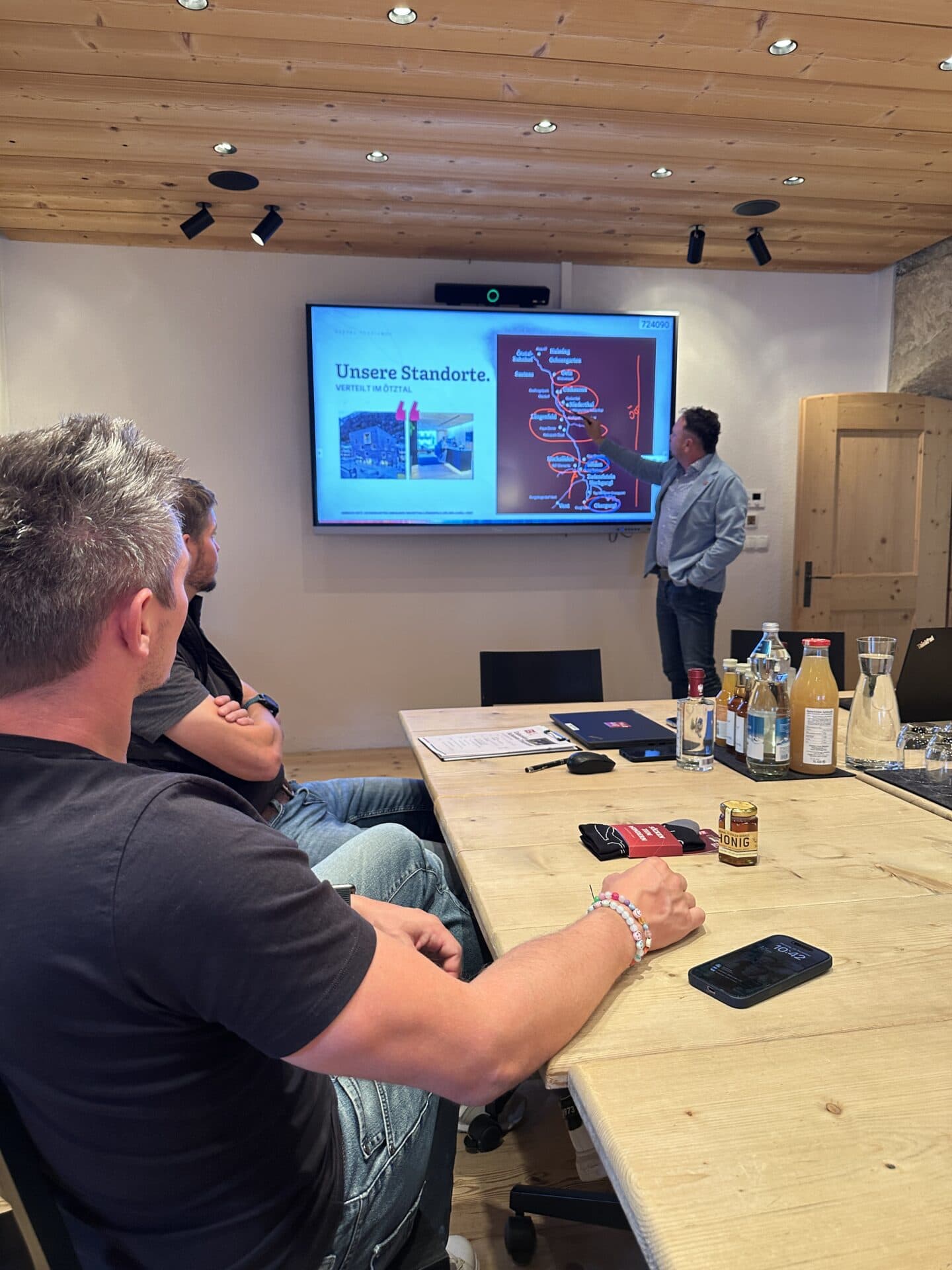 Ötztal-Tourismus-Geschäftsführer Oliver Schwarz, die Destinationsmanager Dominik Linser und Leo Holzknecht sowie Lebensraummanager Raphael Kuen stellten zentrale Bereiche ihrer Arbeit vor. Diskutiert wurden u. a. Themen wie Prozessoptimierung, Schnittstellenmanagement und die Umsetzung strategischer Projekte.
